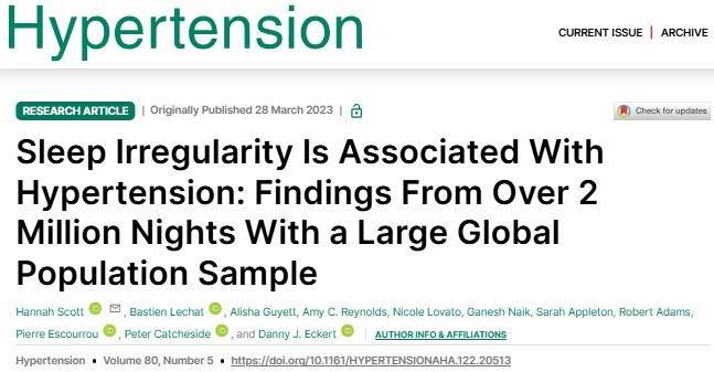 [2] Hannah Scott, et al.,(2023). Sleep Irregularity Is Associated With Hypertension: Findings From Over 2 Million Nights With a Large Global Population Sample.Hypertension, DOI: 10.1161/HYPERTENSIONAHA.122.20513.