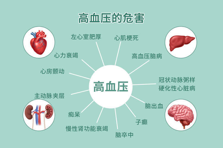 在血压过高时,血管会承受较大压力,在高压状态容易损伤,进而让血液内的胆固醇有机会沉积在血管壁上,很容易引起斑块、加速动脉粥样硬化的进展。且为了对抗血液异常上升的压力,血管壁会逐渐变厚,管腔会因此而变窄,如若合并上斑块的话,会导致体内的血液循环受影响,各器官的供氧供血会因此而不足,容易诱发血栓、脑梗等严重并发症。
